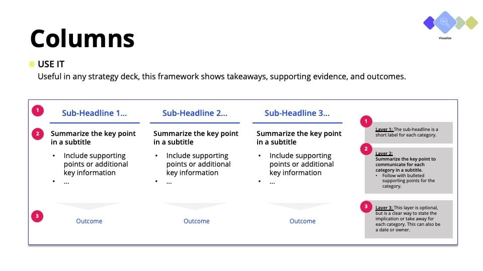 Use it to line up your insights in a way that’s so clean, even distracted executives can understand it before their coffee mug hits the table.