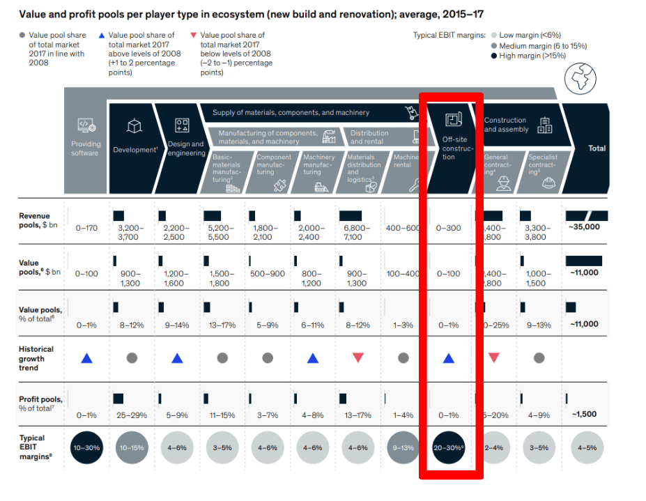Where is this value migrating? Offsite [read: standardized] manufacturing is emerging as the winning area, creating new opportunities for suppliers, fabricators, and logistics providers who can adapt.