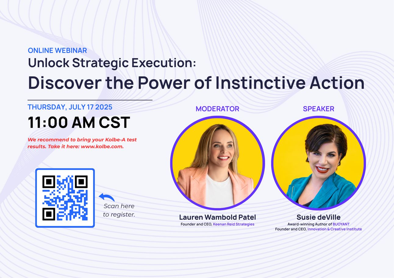 Don’t forget to bring your Kolbe-A results to get the most out of it.
